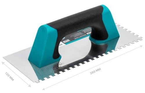 Vďaka inox (nerezovej) čepeli s hrúbkou 0,7 mm poskytuje maximálnu odolnosť voči korózii a deformáciám aj pri intenzívnom používaní. Zuby 6 mm zabezpečujú rovnomerné nanesenie materiálu pri pokládke dlažby, obkladov aj väčších formátov.