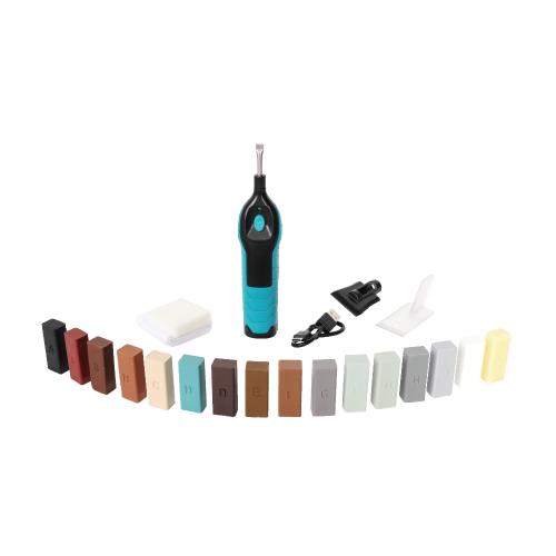 Súčasťou sady je aj nabíjačka, čistiaca špachtľa a leštiaci tampón, ktoré umožňujú čisté dokončenie opravy bez stôp.
