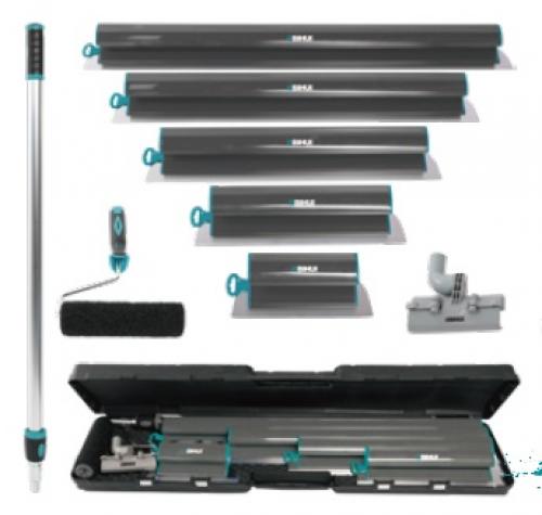 Obsahuje súbor hladidiel z nerezovej ocele (INOX) s pružnými čepeľami hrúbky 0,3 mm, ktoré zabezpečujú dokonale hladký povrch bez stôp po ťahoch.