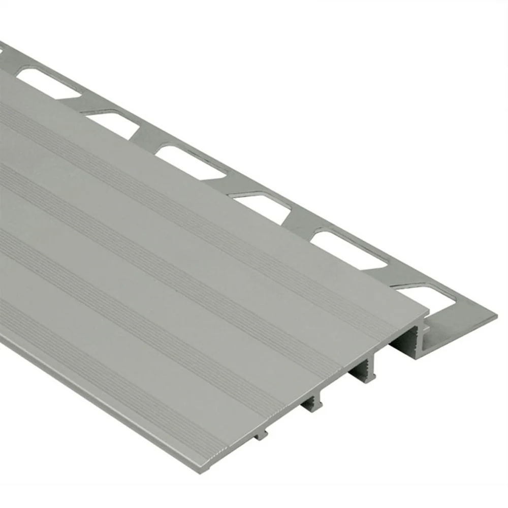 Schlüter® RENO-RAMP je profesionálny prechodový profil určený na vytvorenie plynulého prechodu medzi podlahovými krytinami s rozdielnou výškou. Profil eliminuje vznik schodu medzi povrchmi, čím zvyšuje bezpečnosť pohybu a zároveň chráni hrany dlažby pred poškodením.