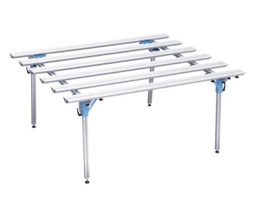 Robustná konštrukcia a stabilné nohy zabezpečujú bezpečné pracovné podmienky aj pri práci s ťažkými a veľkými formátmi. Pracovný stôl je vhodný pre dielne aj montážne práce v teréne a ocenia ho najmä profesionáli pracujúci s veľkoformátovými materiálmi.
