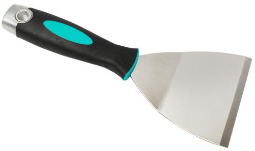 Ergonomická mäkká rukoväť poskytuje pohodlie a istotu pri práci, zatiaľ čo kovová koncovka umožňuje poklepanie kladivkom pri ťažko odnímateľných materiáloch.
