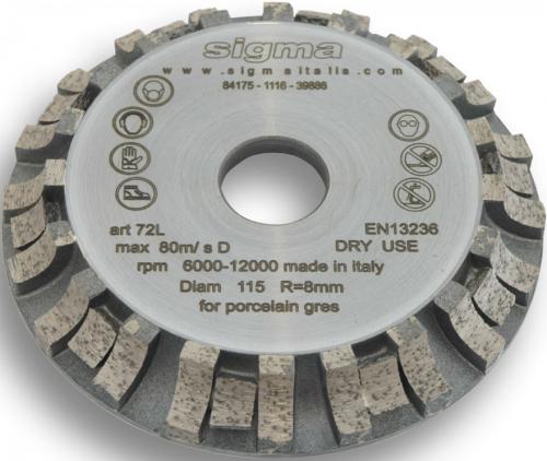 Uberací kotúč SIGMA 115/22,2 R10 je určený na opracovanie a úpravu povrchu GRES (porcelánovej dlažby) a tvrdých keramických materiálov. Pomáha pri zrovnávaní hrán, jemnom ubieraní materiálu a korekciách rezu pri montáži obkladov a dlažieb.
